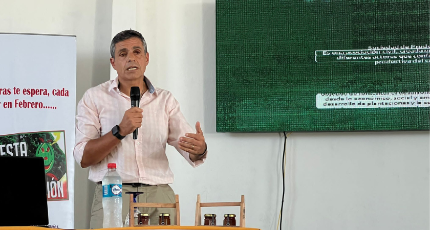 “La Fiesta de la Sandía y la Forestación se realiza desde hace muchísimos años en Tranqueras y en esta oportunidad se nos permitió realizar una presentación en el lanzamiento oficial”, dijo Oñate a Forestal. La intervención se enfocó en presentar a la Sociedad de Productores Forestales (SPF), su visión, organigrama, composición y líneas de trabajo. Oñate explicó en qué áreas trabaja la gremial como, por ejemplo, el Consorcio de Investigación junto con el LATU y el INIA, los temas vinculados a sanidad, la comunicación y difusión, y los asuntos laborales, ya que la SPF también participa dentro del consejo de salarios.