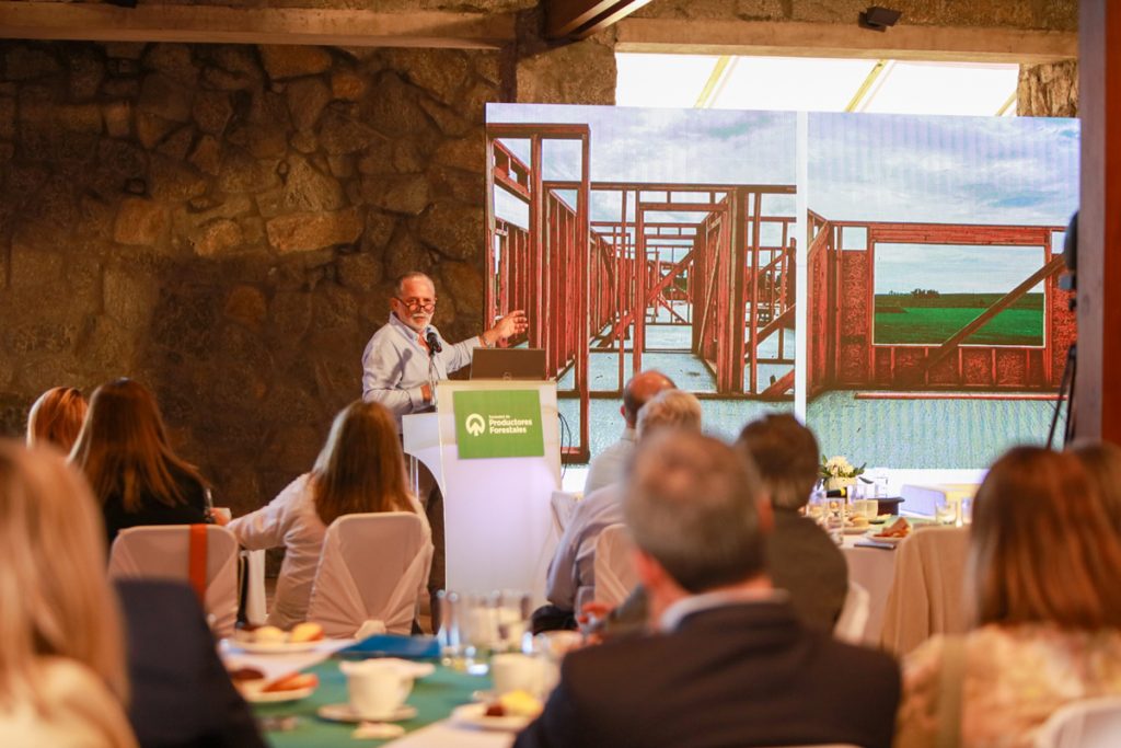El primer tramo, llamado Bloque Forestal, contó con las intervenciones de Alberto Voulminot, director por la SPF del Centro Tecnológico Forestal Maderero, y de Álvaro Pérez del Castillo, director de Pike Consultora Forestal y Carbosur.