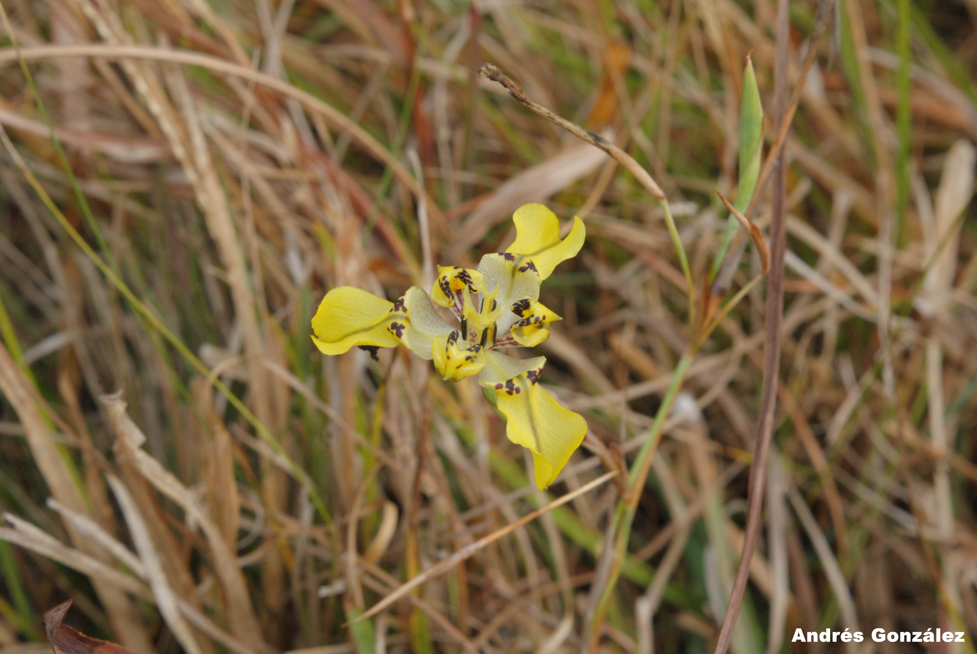 Aunque la gran mayoría de los agrónomos forestales se dedican al lado más productivo del sector, Andrés decidió enfocarse en la conservación del bosque nativo. Justamente mientras hacía un relevamiento en la zona de Arbolito para su tesis de grado fue que se topó con la planta hoy conocida –y bautizada por él mismo– como Cypella aurinegra. “Vi una florecilla amarilla asomando en un pajonal. Yo ya venía estudiando la flora del país hacía años así que pude identificar, más o menos, que se trataba del género Cypella. Casi todas tenían flores naranjas o blancas, nunca había visto una de ese color”, explica. La confirmación de que se trataba de una especie nueva para el mundo llegó a los pocos días de la mano de un grupo de científicos brasileños expertos en iridáceas, familia a la que pertenece el género Cypella.