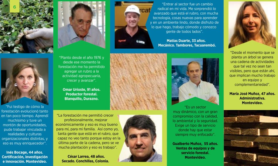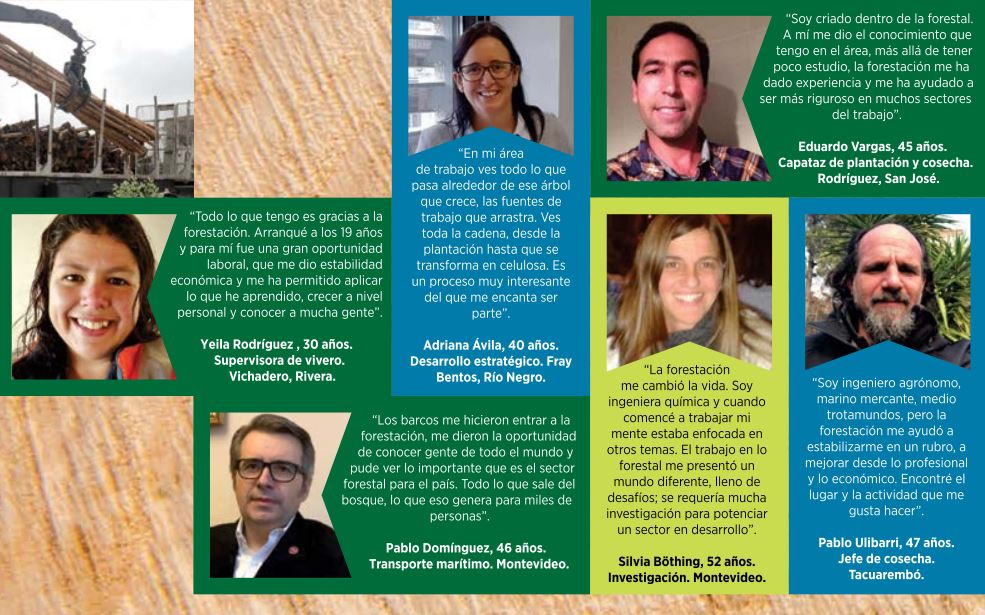 Como parte de la nota publicada en nuestra edición N°30 sobre la actualidad del mercado laboral forestal en el Uruguay, revista Forestal buscó a 20 personas (de las más de 25.000 que integran directa o indirectamente la cadena forestal según cifras de Exante) para conocer, brevemente, sus historias trabajando en los distintos eslabones de este sector.