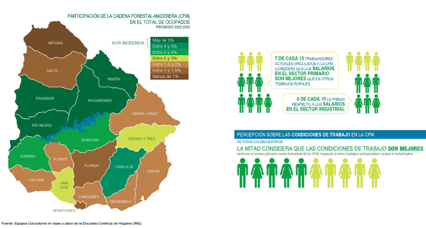 Con una percepción positiva generalizada sobre salarios y condiciones de trabajo, la industria forestal se posiciona como una alternativa atractiva para el desarrollo profesional en el interior del país. Así lo revela un estudio encargado por el Centro Tecnológico Forestal Maderero y realizado por Equipos Consultores.